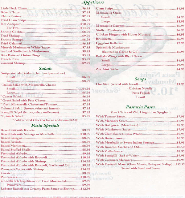 Medford Pastaria Menu